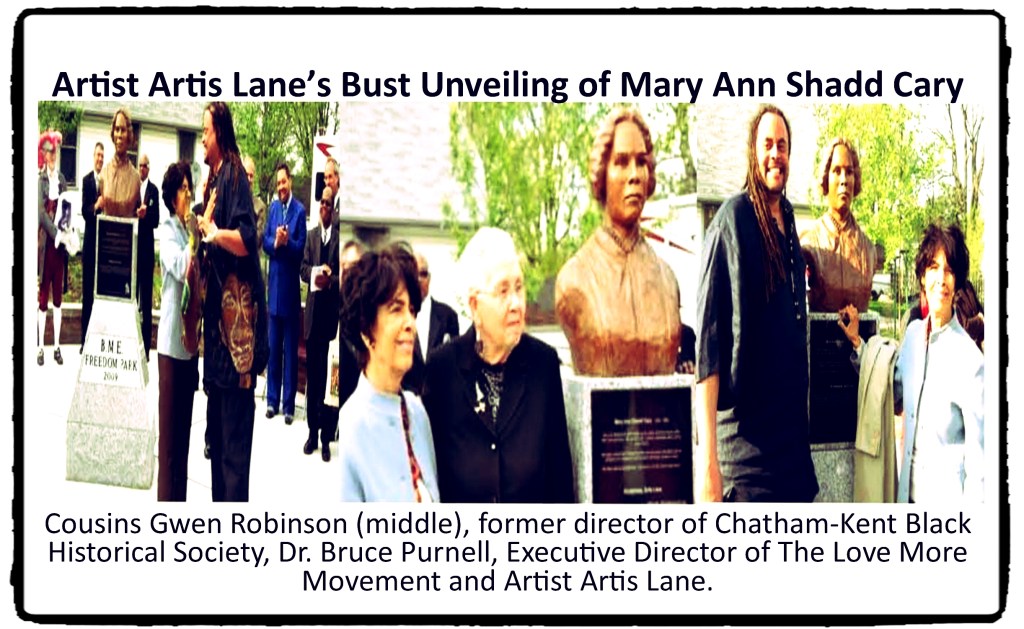For Black History Month and the Celebration of “2020ne Love” we will highlight Black excellence and phenomenal accomplishments of African people throughout the Diaspora who have and continue to shape this beautiful world. This highlight is about one of my phenomenal cousins, Artis Lane, who was born on May the 14th day of 1927. Some believe that she has tapped into the fountain of youth because of her ageless appearance. She is an African American sculptor, painter, and printmaker. Born Artis Marie Shreve in North Buxton, Ontario, Canada, when she was six, she was kneeling in the clay of her grandmother’s farm and fashioning dolls. Ever since, she has been capturing souls and conjuring them into images of unfolding life. Together we share as being descendants of renowned abolitionist Abraham Shadd as well as abolitionist educator, and publisher Mary Ann Shadd, the soft-spoken painter and sculptor, is an advocate for freeing the human spirit. Artis Lane’s works are among the collections of Bill Cosby, Oprah Winfrey, Linda Evans, Cicely Tyson, former President and Mrs. George Bush, Mr. and Mrs. Sidney Poitier, Mayor Maynard Jackson (Atlanta, GA), Howard University, National Portrait Gallery (Smithsonian Institute), National Council of Negro Women, Mr. and Mrs. Gordon Getty, Mr. and Mrs. Michael Jordan, Mr. Steve Ross (Time-Warner), Mr. and Mrs. Ervin “Magic” Johnson, Mr. Quincy Jones, Mr. and Mrs. Walter Anneberg, Cary Grant, Nelson and Winnie Mandela, Henry Kissinger and others.